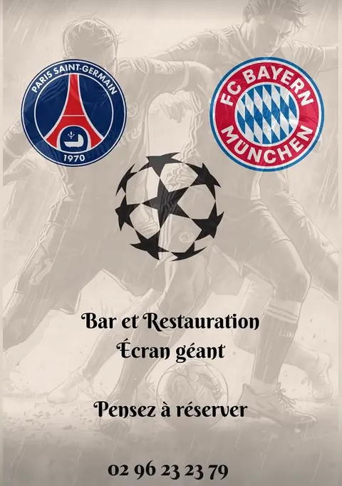 Retransmission du match Paris SG / FC Bayern Munchen sur écran géant au Celtic ! Pensez à réserver.